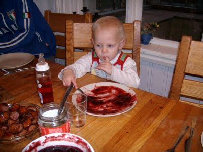 Så här går det om man ställer fram ett helt spann med lingonsylt framför en 2½-åring, bara så att ni vet ;O)